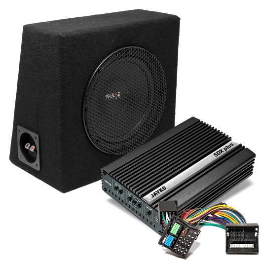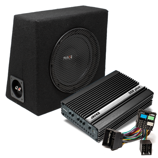 Neu: Wir bieten nun auch Woofer-Sets bestehend aus dem 5DX plus-Verstärker von JAYKS und einem für das Fahrzeug geeigneten Subwoofer.