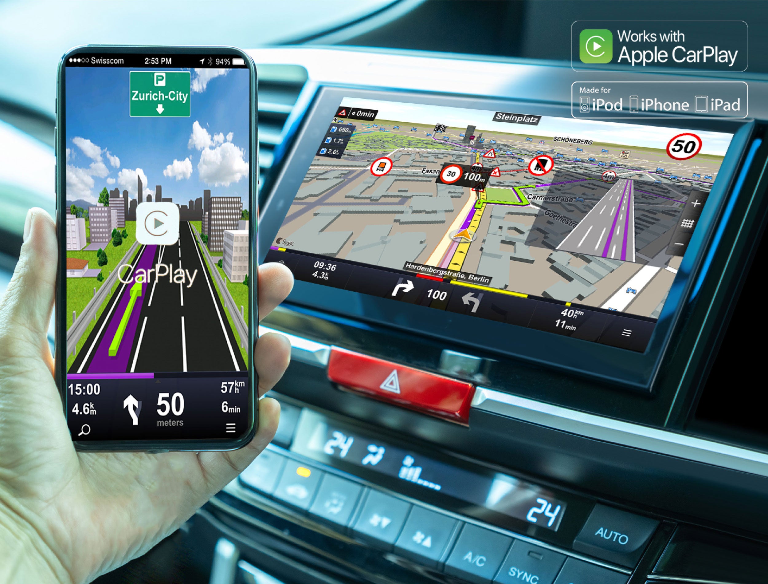 Apple CarPlay bietet iPhone-Nutzern eine intuitive Möglichkeit, um Anrufe zu tätigen, Karten zu nutzen, Musik zu hören und auf Nachrichten zuzugreifen - mit nur einem Wort oder einer Berührung. Mit iOS 12.0 und höher werden auch Navigations-Apps von Drittanbietern wie Google Maps ebenfalls unterstützt.